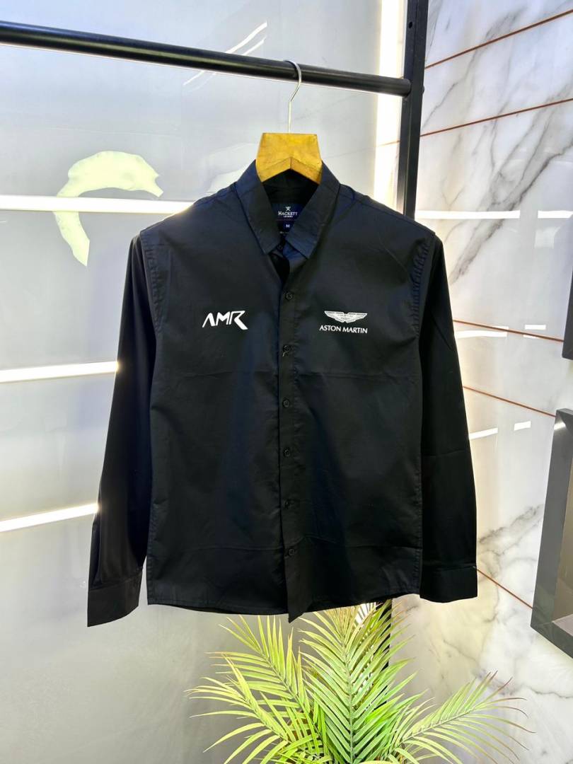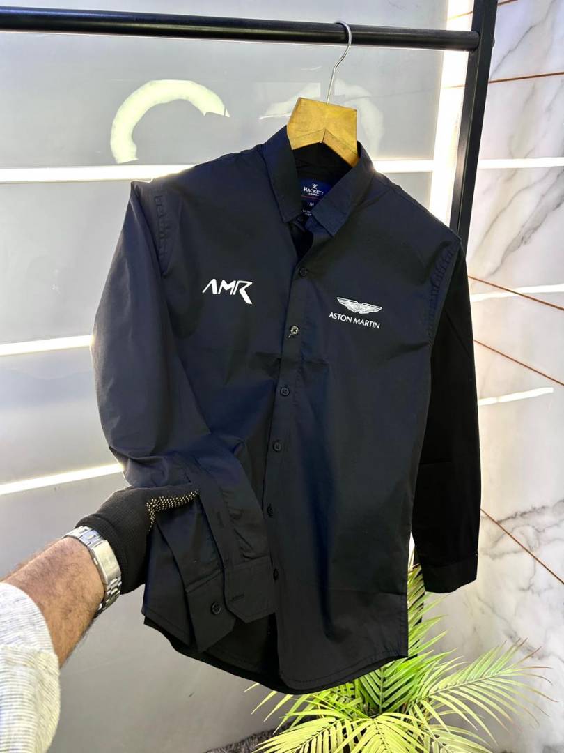 Aston Martin Hacket t Black Oxford Lycra Back Printed Premium Shirts F2919-BL