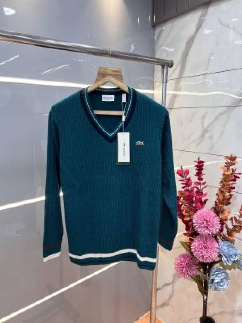 Lacost e Rama Green Premium Imported V Neck Knitted Pullover with Embroidered Logo 3501
